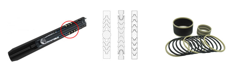 When well pressure or hydraulic pressure is applied, each V-ring in the stack flares outward, pressing firmly against the metal housing. This creates a tight seal in both static and dynamic conditions. The stack is typically composed of: