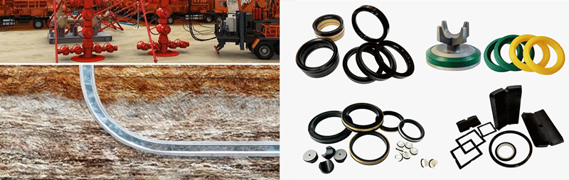 • Provide the best sealing type and material for various oil and gas drilling and exploration applications to maximize the life and performance of the sealing system. NBR, HNBR, FKM, Aflas, FFKM, PTFE, PEEK materials are widely used in downhole.